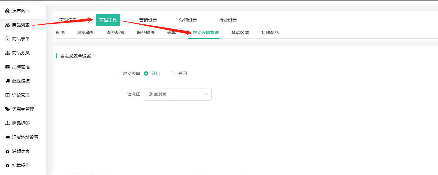 四、商品添加自定义表单