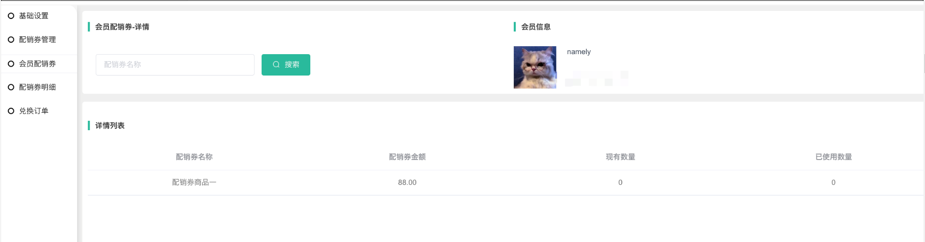 2、点击详情跳转查看会员配销券的详情
