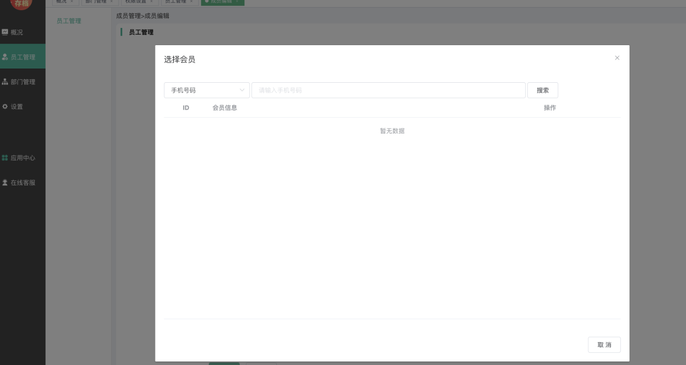 操作--编辑,可查看员工详细信息,并可手动关联系统会员